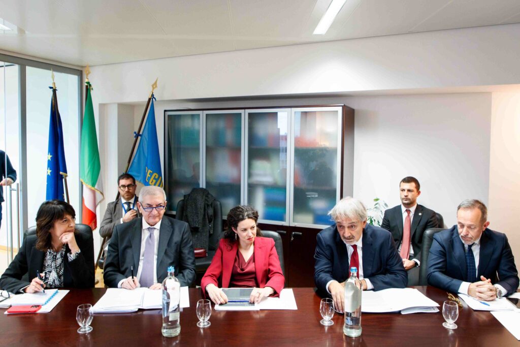 Una delegazione della Regione Lazio guidata dal presidente Francesco Rocca, e composta dal vicepresidente Roberta Angelilli; dall’assessore al Bilancio e alle Politiche agricole, Giancarlo Righini; dal presidente di Lazio Innova, Francesco Marcolini; dai direttori della direzione regionale della Programmazione economica, Fondi europei e Pnrr, Paolo Alfarone; della direzione regionale Sviluppo economico e Attività produttive, Tiziana Petucci, ha incontrato, presso la sede della Regione Lazio a Bruxelles, la vicepresidente del Parlamento Ue, Antonella Sberna, il ministro per gli Affari europei, le Politiche di coesione e il Pnrr, Tommaso Foti, e alcuni eurodeputati eletti nel collegio dell’Italia centrale.