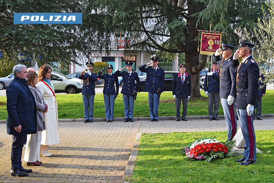 Alla presenza del Prefetto di Rieti, Pinuccia Niglio e del vice Sindaco di Rieti, Chiara Mestichelli, di una rappresentanza dell’A.N.P.S. e della Polizia di Stato, il Questore di Rieti, Mauro Fabozzi, ha deposto un cuscino di fiori ai piedi della targa commemorativa e dell’albero di ulivo dedicato all’eroico funzionario di Polizia.