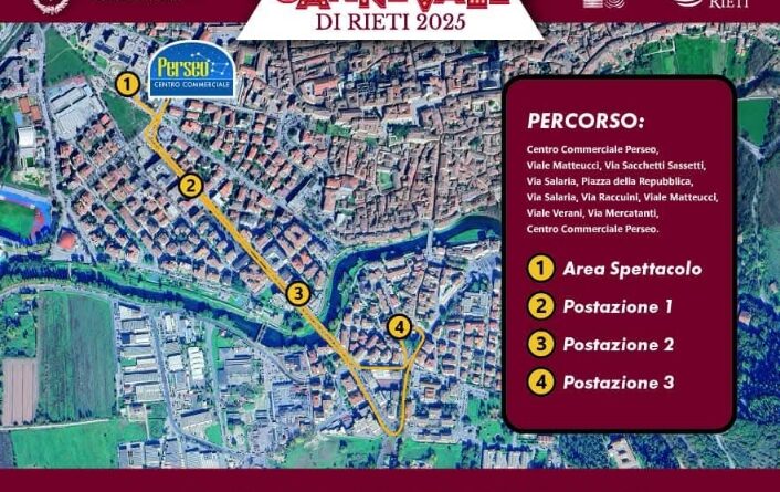 L’appuntamento è per le 14 nel piazzale del centro commerciale Perseo, poi il variopinto corteo si snoderà verso viale Matteucci e via Sacchetti Sassetti, per poi attraversare piazza della Repubblica e tornare al punto di partenza. Lungo il percorso ci saranno tre postazioni musicali, tutte curate da deejay e intrattenitori reatini, per poi concludere con dolci tipici carnevaleschi a cura dell’Associazione provinciale cuochi reatini.
