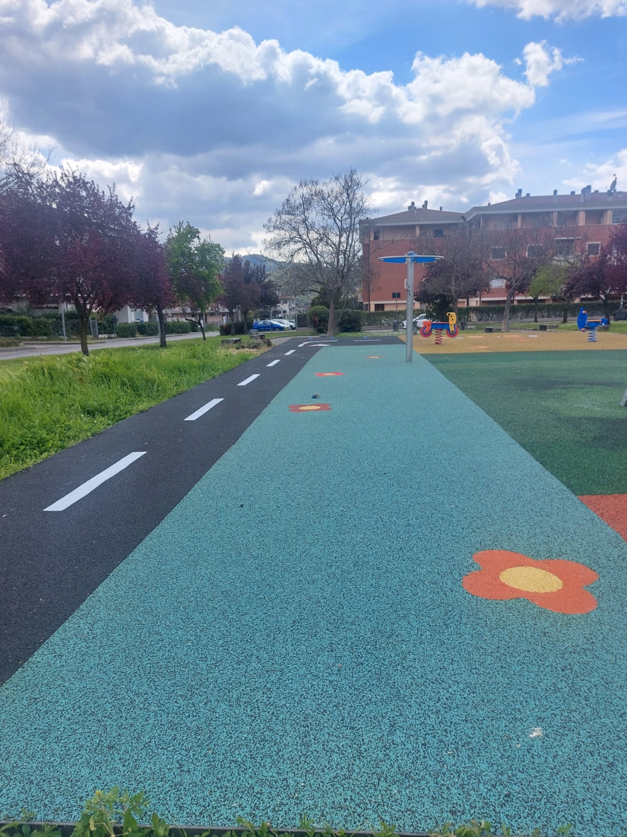 L’intervento ha consentito di rimuovere la precedente pavimentazione e conseguentemente di installare un nuovo fondo antitrauma di adeguato spessore, oltre alla messa in sicurezza dell’area e all’abbattimento delle barriere architettoniche tramite la realizzazione di pedane d’accesso al parco e all’area giochi anche per persone con disabilità motoria.