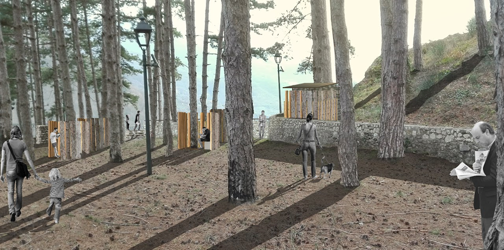 In termini di sostenibilità ambientale, opera attraverso il riuso di materiale presente in loco (pietre e legno), conseguente alle operazioni di disboscamento e di demolizione parziale degli attuali muri di sostegno in pietra; sostenibilità economica, puntando alla riduzione del consumo di materie prime e alla diminuzione degli scarti da inviare in discarica con il conseguente minor numero di trasporti inquinanti, introducendo principi di economia circolare ed eco-progettazione.
