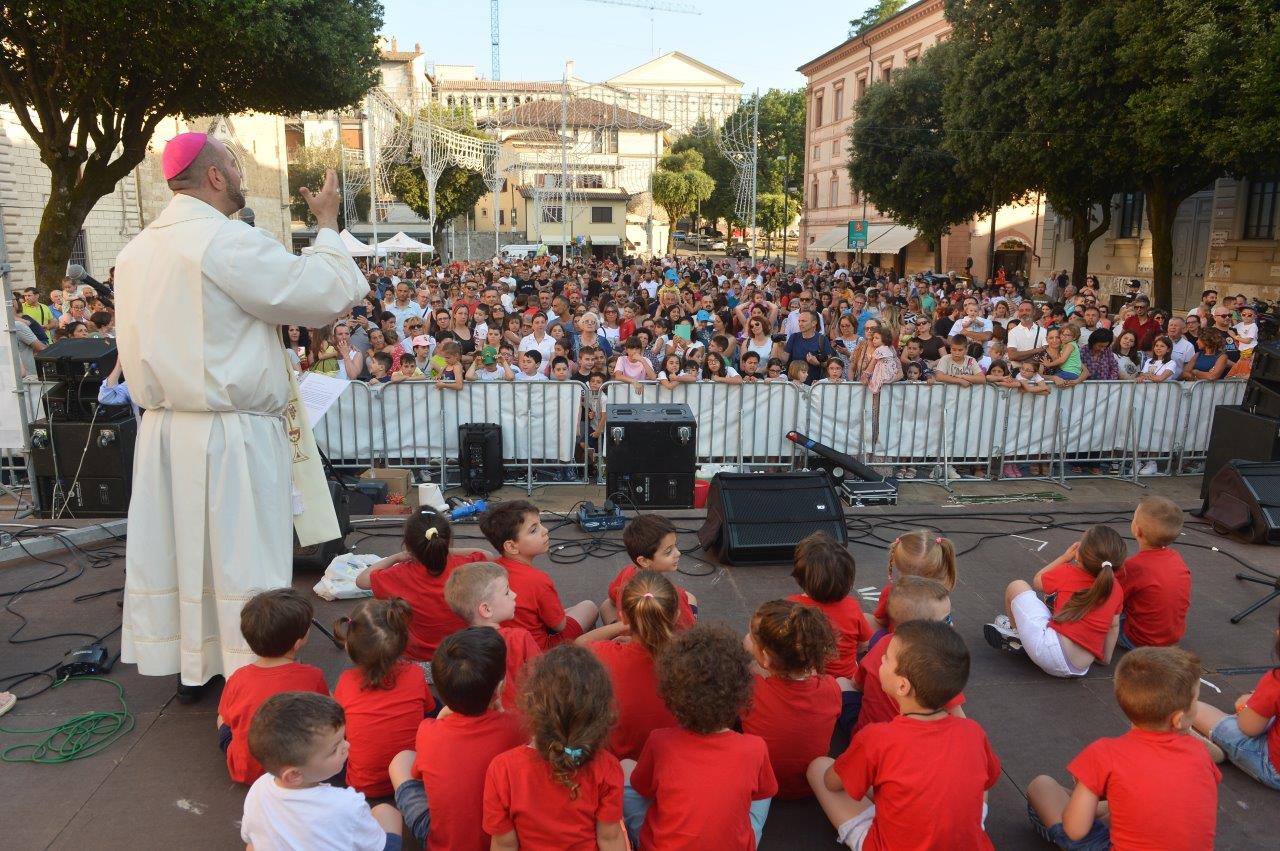 Piazza Mazzini, caldo cuore del Giugno Antoniano Reatino di questi ultimi anni, la sera del 25 giugno ha abbracciato i più piccoli. Bambini e famiglie, occhi accesi e mani strette, hanno reso viva la conclusione della ideale tre giorni che la diocesi di Rieti ha voluto dedicare agli affetti e alle generazioni. Prima la giornata dei fidanzati e delle famiglie, poi la giornata dei giovani e, infine, quella dei bambini: un piccolo itinerario che racchiude un messaggio semplice e potente. La Chiesa è qui per ciascuno, e ciascuno trova nel suo sguardo un posto unico.
