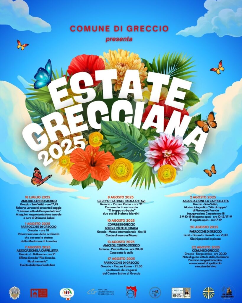 Eventi culturali, mostre, manifestazioni enogastronomiche, rievocazioni legate alla storia e alle tradizioni locali, attività per ragazzi, adulti e famiglie, sono tante le iniziative che animeranno l’Estate Grecciana, il tradizionale appuntamento estivo promosso dall’Amministrazione comunale di Greccio attraverso l’Assessorato alle politiche sociali e giovanili, rapporti con le associazioni e consulte e pari opportunità, in collaborazione con tante associazioni del territorio che hanno aderito alla manifestazione, impreziosendo il cartellone di eventi.