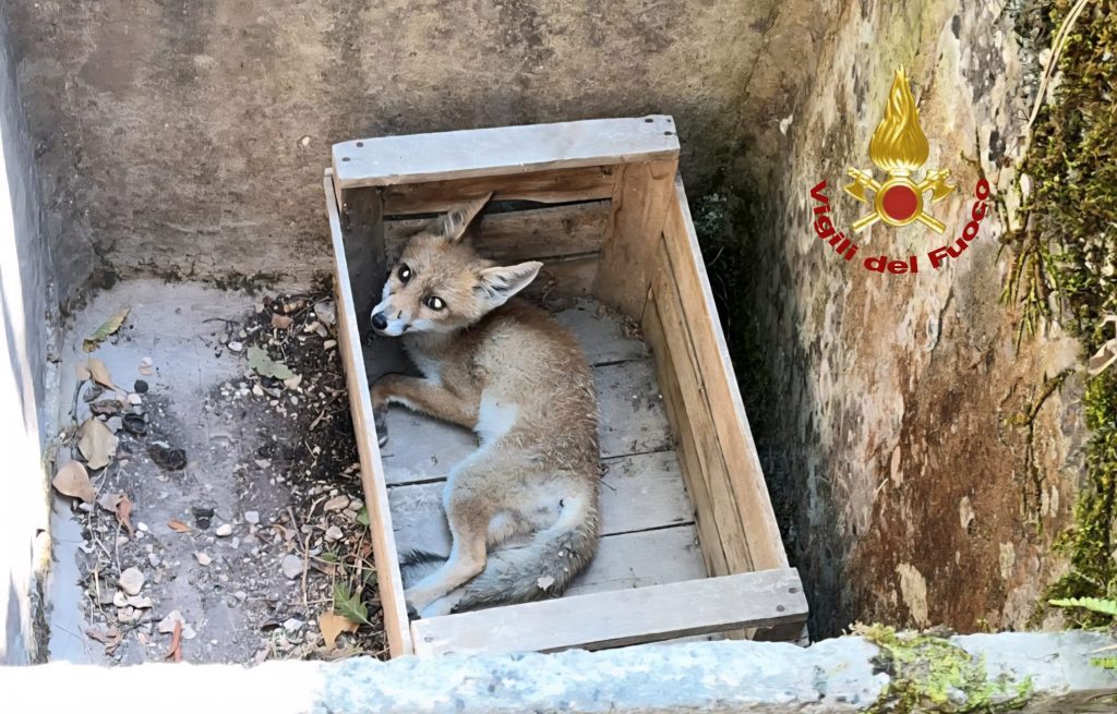 Cucciolo di volpe recuperato e salvato dai Vigili del fuoco nella frazione di Maglianello Alto (Rieti). Il tempestivo intervento dei Vigili del fuoco della sede d centrale di Rieti ha permesso di trarre in salvo un piccolo di volpe rimasto intrappolato dopo essere caduto accidentalmente all’interno di una struttura verosimilmente assimilabile ad un vecchio lavatoio.