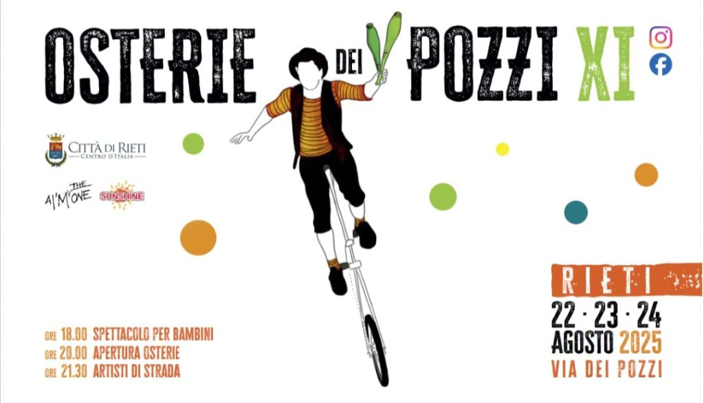 Edizione numero undici per le “Osterie dei Pozzi”, un appuntamento ormai fisso dell’estate reatina che quest’anno metterà al centro gli artisti di strada.