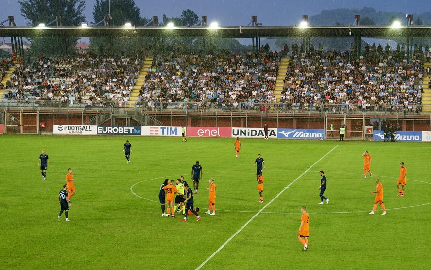 Partita tutt’altro che amichevole quella giocata a Rieti tra Lazio e Atromitos. Sotto una pioggia battente, sul campo scivoloso dello stadio “Centro d’Italia – Manlio Scopigno”, i contrasti diventano subito duri e i nervi iniziano a saltare.