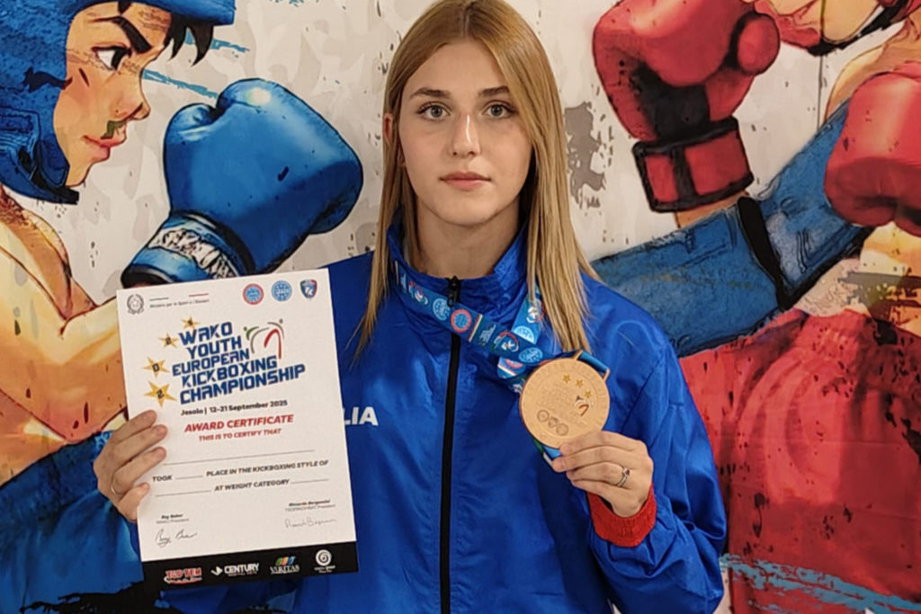 L’atleta di Fiumata, Valeria D’Angeli (nella foto), della società Kickboxing Team D’angeli ha conquistato la medaglia di bronzo con la maglia della Nazionale Italiana nella categoria J – 70 specialità Kick Light.