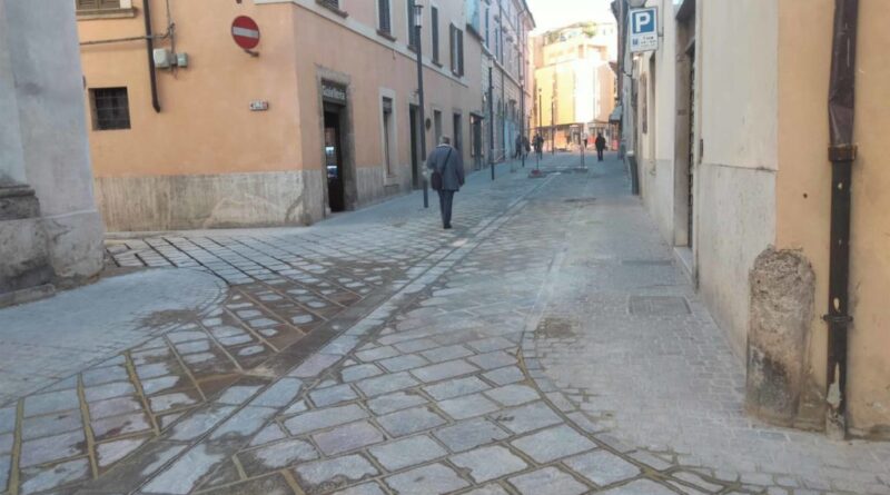 La strada si presenta completamente rinnovata, con nuove lastre e una pavimentazione uniforme, che restituiscono al centro storico un aspetto più ordinato e curato.
