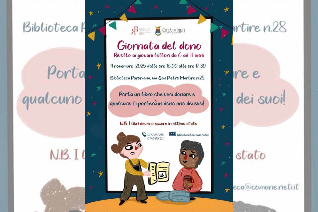 Durante l’evento, presso la Sezione Ragazzi, sarà inoltre inaugurato lo “Scaffale del libro sospeso”, uno spazio permanente dove sarà possibile lasciare un libro e prenderne un altro, favorendo così la circolazione di storie, emozioni e curiosità tra i giovanissimi lettori. Info: Biblioteca Comunale Paroniana – Via San Pietro Martire 28, Rieti
