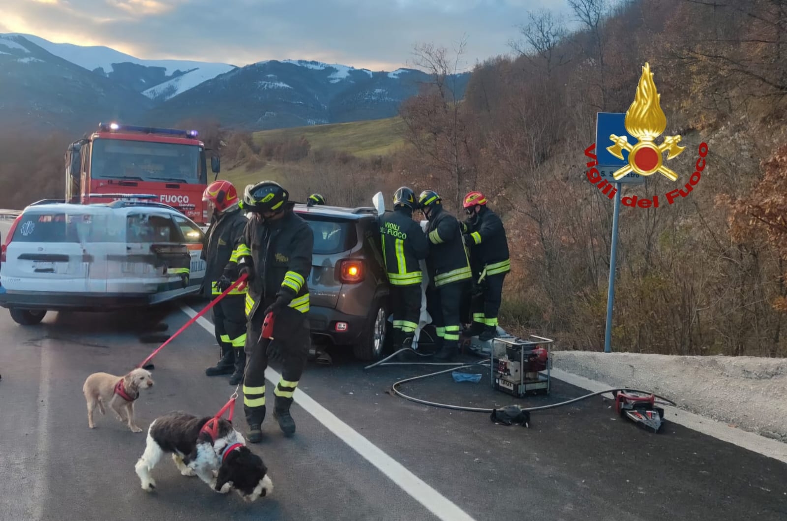 Intervenute nell’immediatezza dell’incidente le squadre dei vigili del fuoco hanno da subito operato con cesoie e divaricatori per la disincarcerazione dell’uomo a seguito dell’impatto del veicolo contro il guardrail. L’operazione di soccorso ha permesso, successivamente, il salvataggio e recupero di due cani che si trovavano all’interno dell’auto.