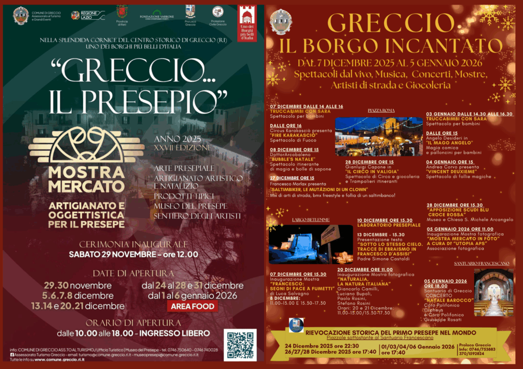 Ancora pochi giorni all’avvio della XXVII Edizione Mostra Mercato dell’Artigianato e dell’Oggettistica per il Presepe di Greccio.