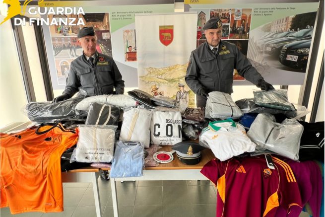 Nello specifico giacche a vento, felpe, maglioni, pantaloni, jeans e portafogli – tutti riportanti marchi e segni distintivi di prestigiose aziende del settore (Nike, Adidas, Balenciaga, Louis Vuitton, Gucci, Stone Island, Colmar, Moncler, Blauer, K-Way, Ralph Lauren, Woolrich, Hermes, Lacoste, Dsquared2, Marcelo Burlon, Fred Perry, Harmont & Blain e Burberry), che venivano sottoposti a sequestro penale e che, se immessi sul mercato, avrebbero fruttato oltre 20.000 euro.