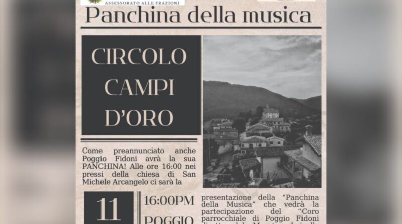 Nella giornata di oggi, domenica 11 gennaio, Poggio Fidoni ha accolto l’inaugurazione della Panchina della Musica, un’iniziativa nata con l’obiettivo di rafforzare il legame tra arte, territorio e comunità locale.