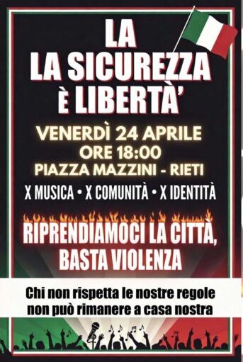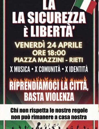 «Abbiamo preso atto che il 25 aprile è ormai una sorta di festa privata – dichiara il presidente di Area Rieti, Chicco Costini –. Non abbiamo alcun interesse a ingaggiare sterili discussioni. Soprattutto, abbiamo accolto l’invito della Questura che, per timore di disordini, ci ha chiesto di anticipare la data».