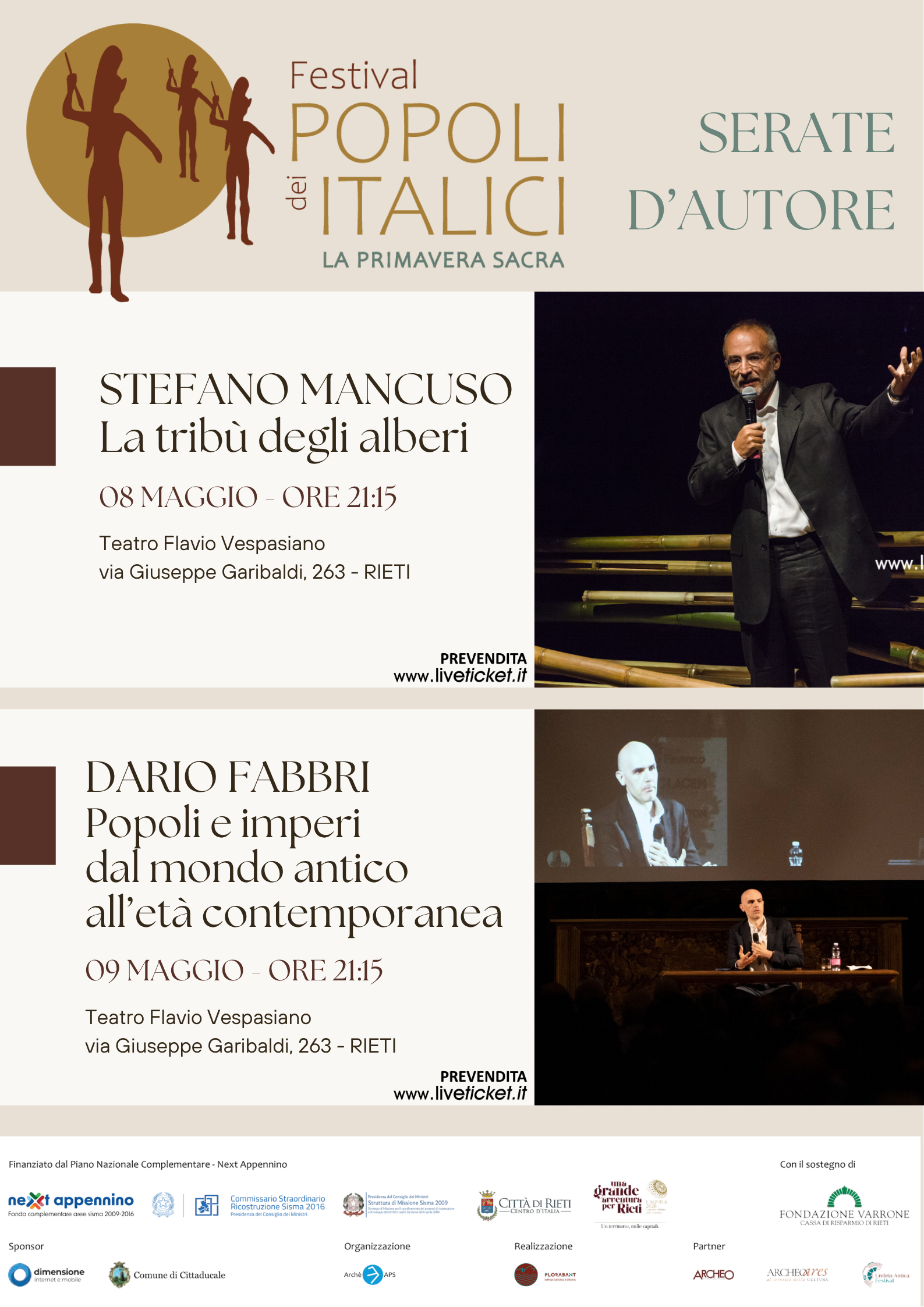 Festival dei Popoli Italici, al Vespasiano Mancuso e Fabbri per due serate tra natura e storia